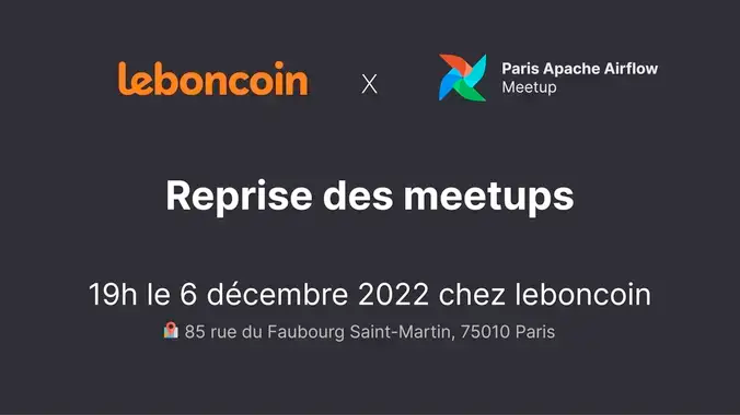 Last but not least, if you are in Paris on the 6th of December you can join us for the reboot of the Apache Airflow meetups—I'm the organizer. Talks will be given in French. The agenda: