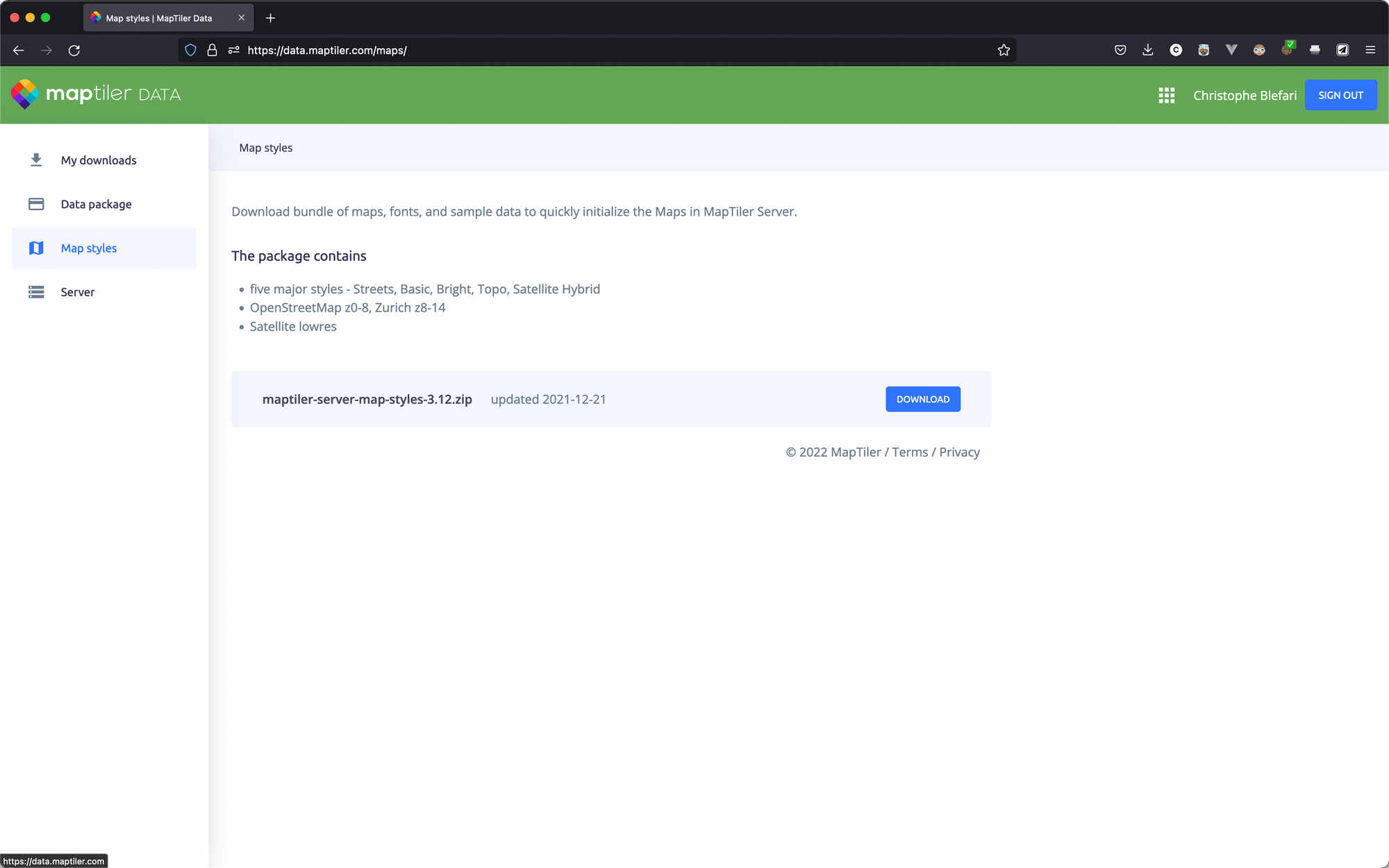Then after some research on Google I also found that MapTiler is providing some open-source map styles. They are a bit different than the streets one. Thankfully they also propose the streets style in a non open-source fashion. I order to get you'll need to create an account on MapTiler and then you will be able to download the zip bundle.