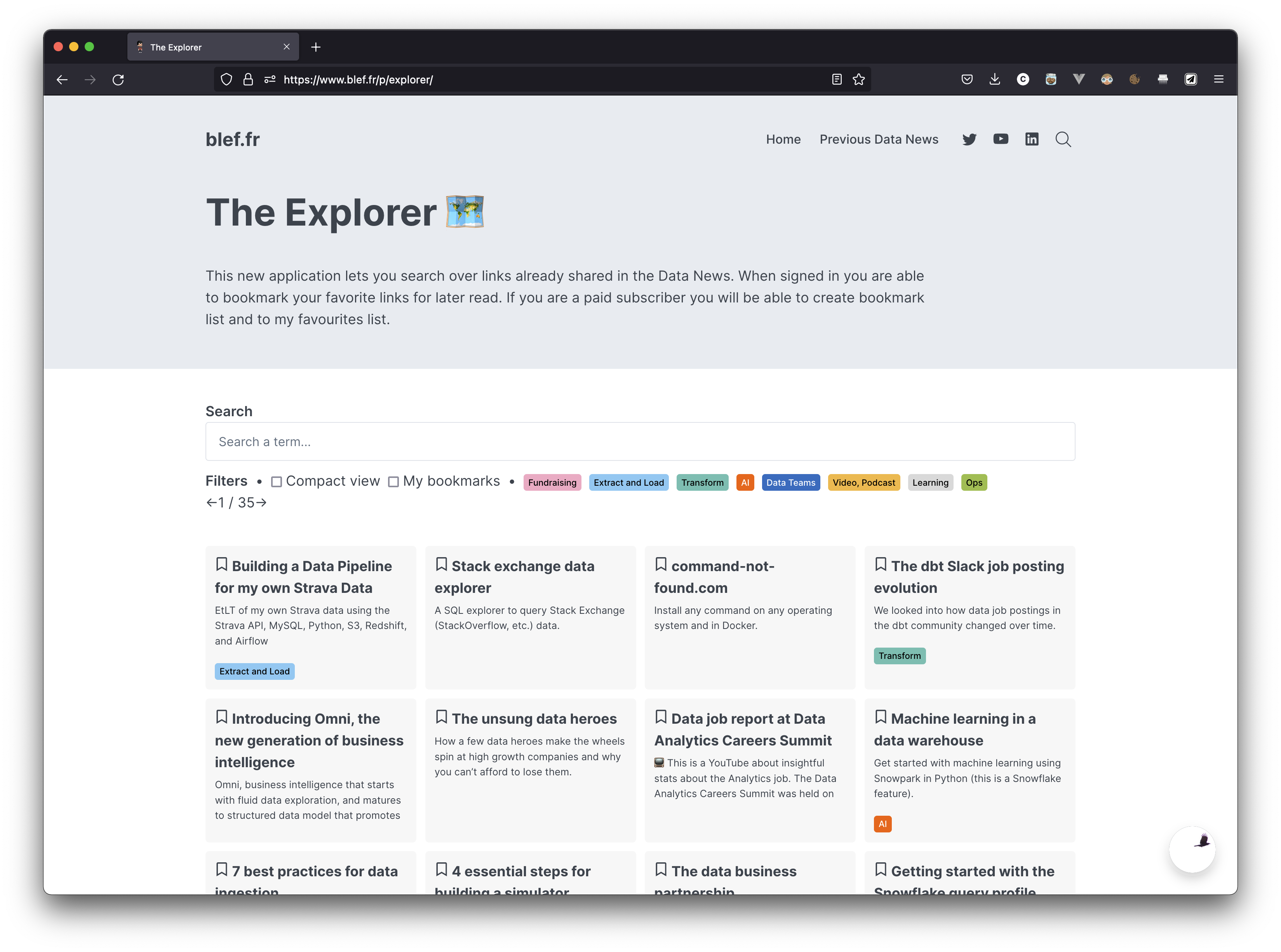 One year and half ago I had developed the Explorer. The Explorer is a search bar that let's you search over all the links that I have shared in the 132 Data News editions.